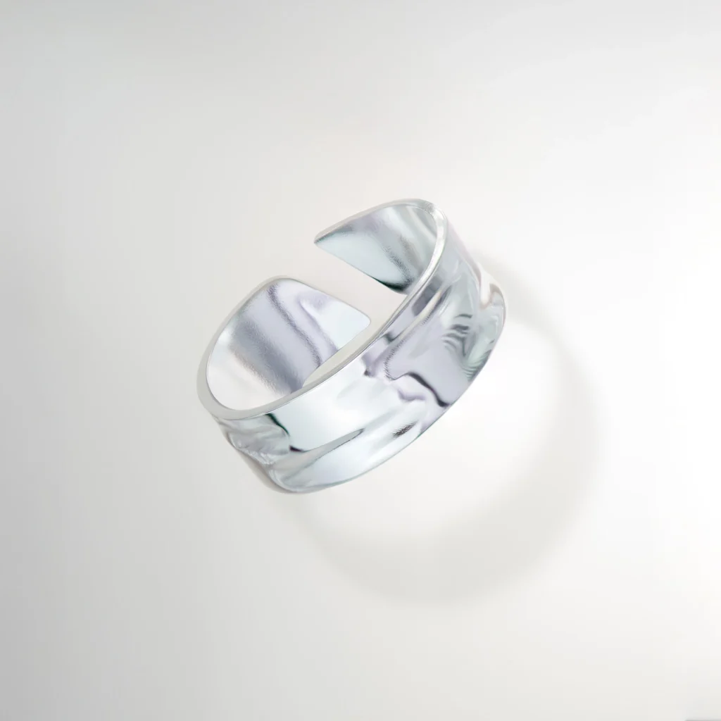 Des pièces aux lignes ondulées, inspirées de la surface de l’eau. Des reflets subtils, pensés pour dialoguer naturellement entre eux.